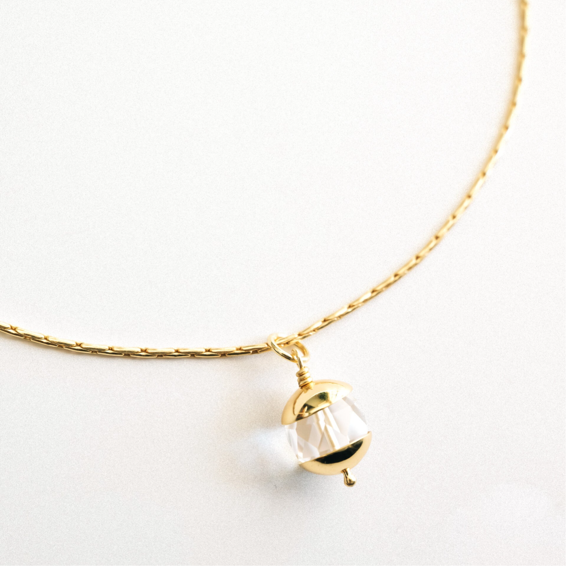 This necklace speaks of transformation, of the way we see life. Just as passing light through a prism changes its form upon exiting, creating a rainbow of different lights and colors, it's as if something inside has transformed it, enhancing its beauty even more.