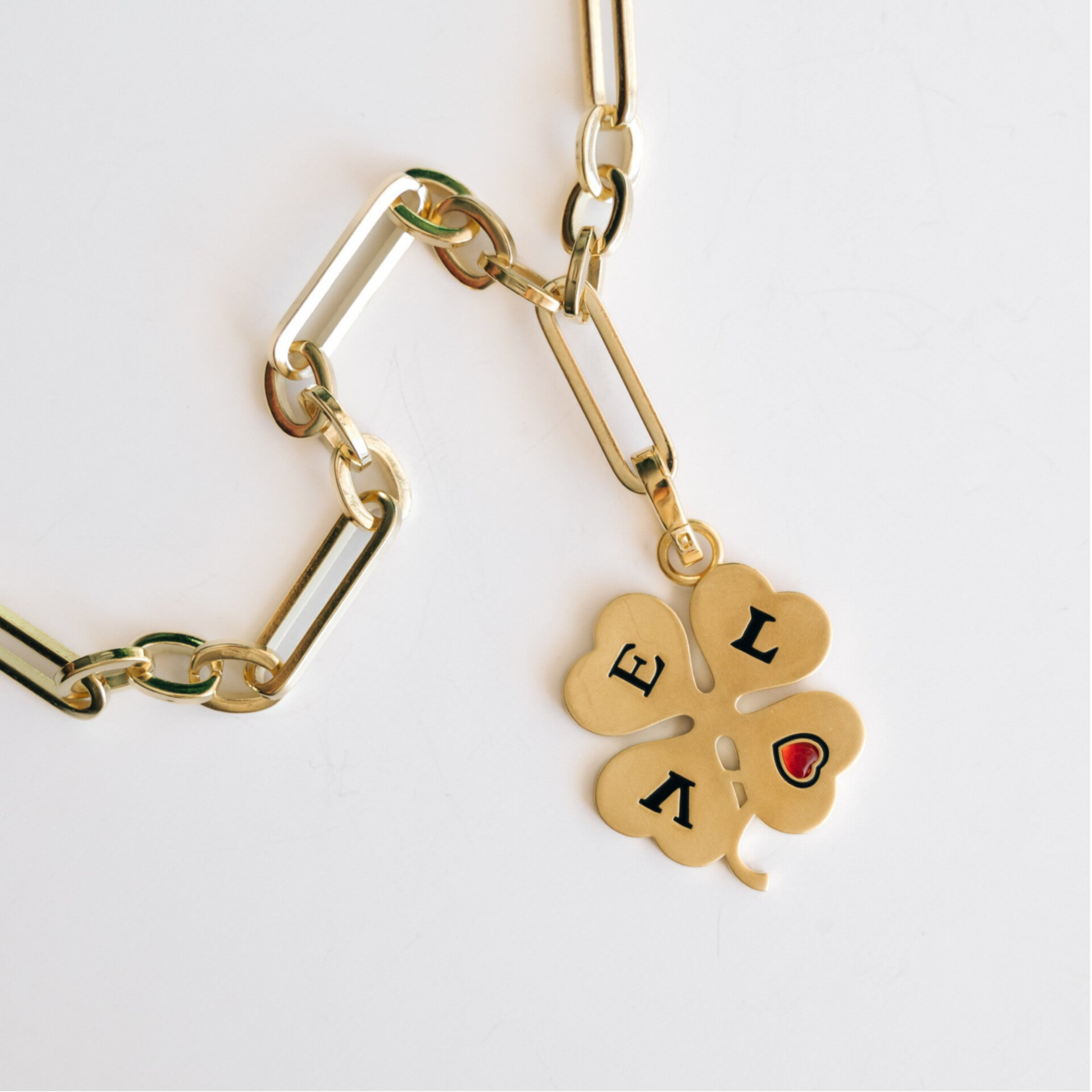 The clover can be removed, and the chain itself is a bracelet.