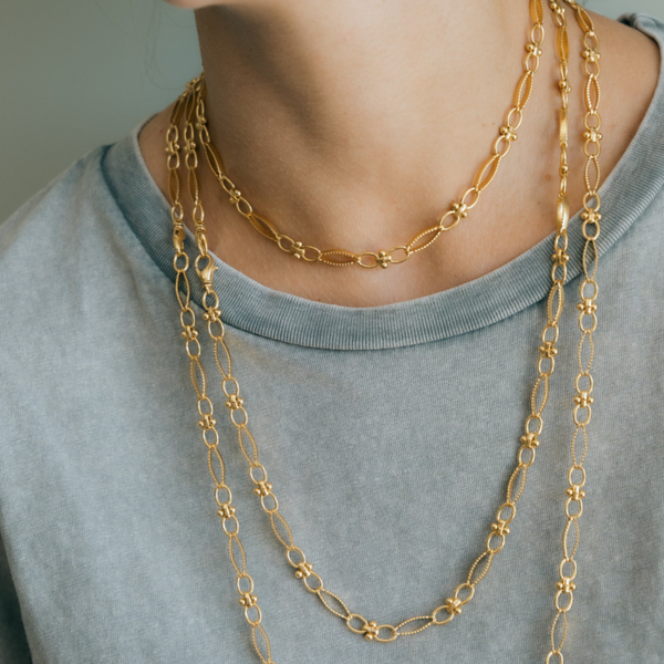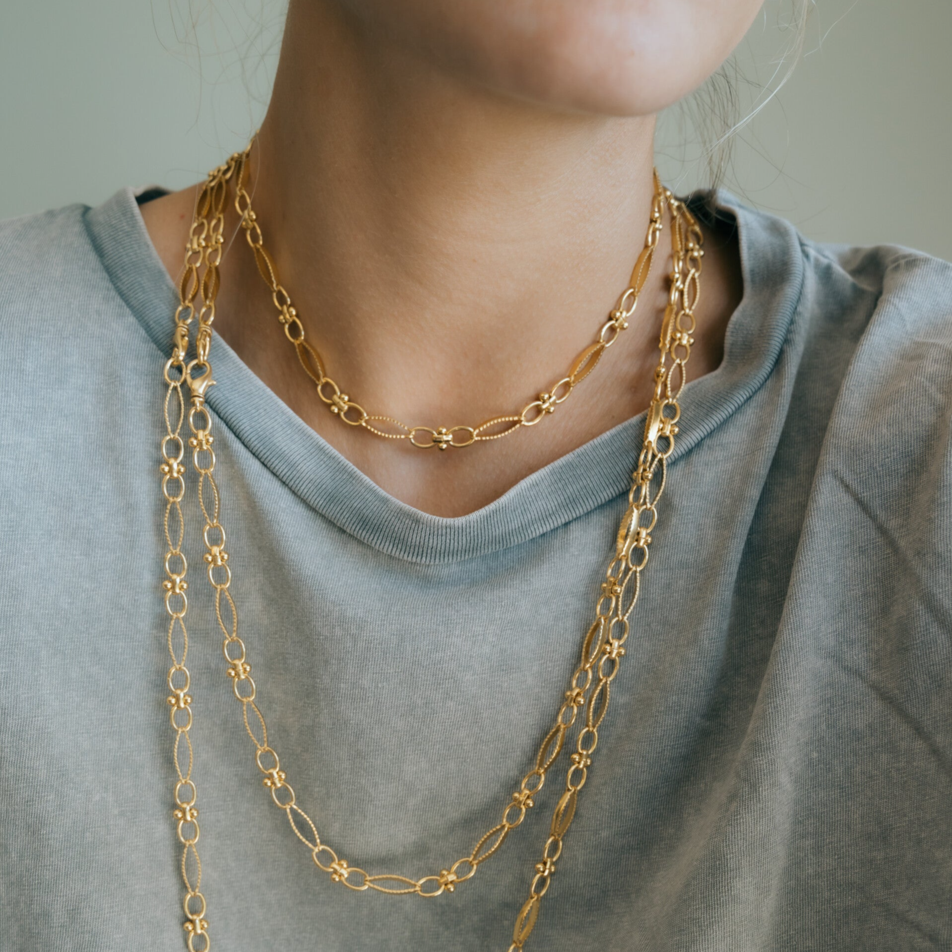 This fantasy chain comes to add a lot of style to the proposal. It is striking and imposing. It is available in three sizes, as each serves a different function. I believe it will be an item that will delight those who wish to use it simply or combine it with a charm to end up with an impressive necklace.